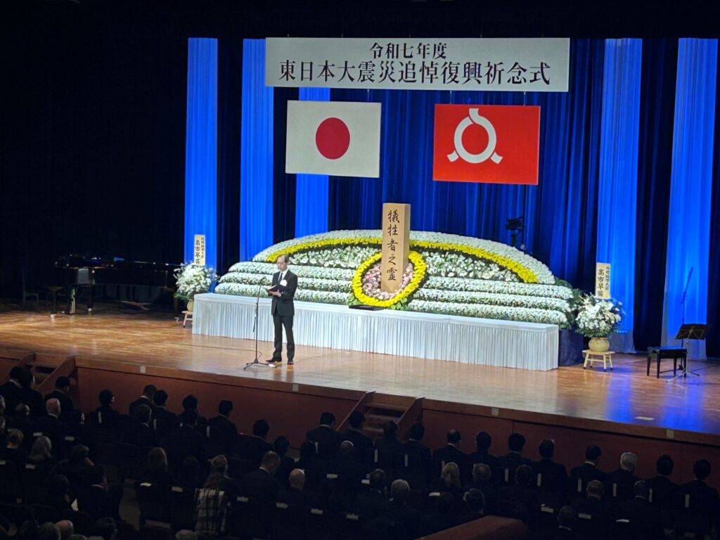 日本大震災から15年目の節目となる2026年3月11日、福島県との包括連携協定に基づく活動の一環として、福島県が開催した東日本大震災追悼復興祈念式に日本フィルの弦楽四重奏が出演し、震災を契機に作曲された「群青」「花は咲く」などを演奏しました。