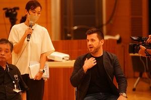 楽曲について知りたいことは、今ならネットで簡単に情報を集められるだろうし、動画配信で音源も聴ける。しかしながら、「オケのテイキは、おもしろい」の醍醐味はなんと言っても実際に参加者が体を動かして作曲家のアイデアや想いを追体験できることにある。そして今回のように、奏者の生の声を聴ける貴重な場でもあり、聴衆と奏者の距離が一気に縮まったひとときでもあった。(実はワークショップ後の反省会では、楽員自身、さらにマイク自身、この曲についての新しい発見があったという。)