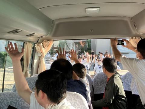 コンサートの後は、子どもたちと楽員でささやかな交流の時間を持ちました。コロナ禍を経て、昨年から定期的な交流を再開させることができ、子どもたちと日本フィルの関係もより強いものになったように感じます。日本フィルが帰りのバスに乗り込むと、子どもたちが外まで出て、姿が見えなくなるまでお見送りをしてくれました。