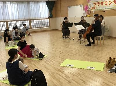 手の届くくらい間近で繰り広げられる音楽に目を丸くし、じっと聴き入り、さかんに拍手を送ってくださるお客様。そんな聴き手の反応を楽団員も肌で感じ、演奏にさらに熱が入る...目に見えないコミュニケーションが盛んに交わされるのが、こういった“アウトリーチ”コンサートの醍醐味です。