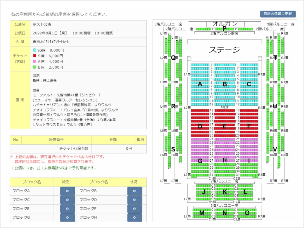 希望枚数を入力し、座席図からご希望ブロックを選択してください。