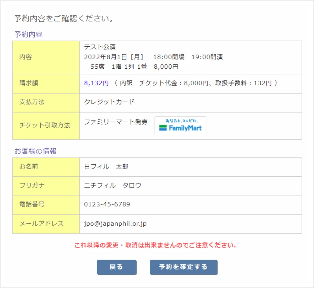 ※「チケット引取方法」は、いずれの場合も「ファミリーマート発券」となります。