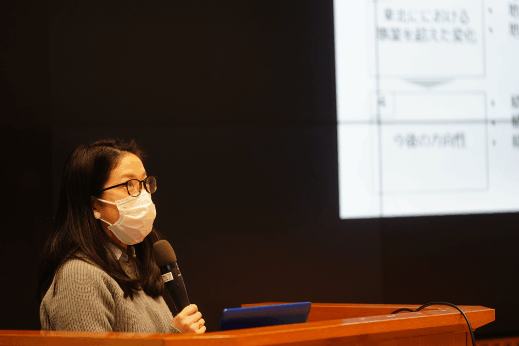 慶應義塾大学SFC研究所の落合千華氏からは、東北の夢プロジェクトにおける調査研究報告をいただきました。